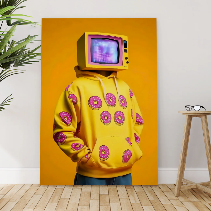 "donut signal" retro pop canvas artTurn up the weird in the best way possible with "Donut Signal", a vibrant pop-surrealist canvas featuring a donut-covered hoodie and a retro TV-headed figure beaming... From Rs. 2,300.00From Rs. 2,300.00 Rs. 3,450.00/