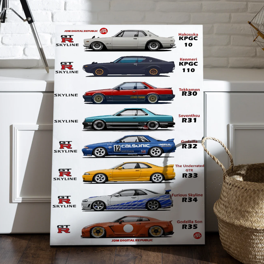 Nissan gt-r evolution canvas – jdm skyline generational art printFuel your space with high-octane heritage through this Nissan GT-R Evolution Canvas, a must-have visual timeline for true JDM enthusiasts. Featuring side-by-side illustrations of iconic Skyline... From Rs. 2,300.00From Rs. 2,300.00 Rs. 3,450.00/