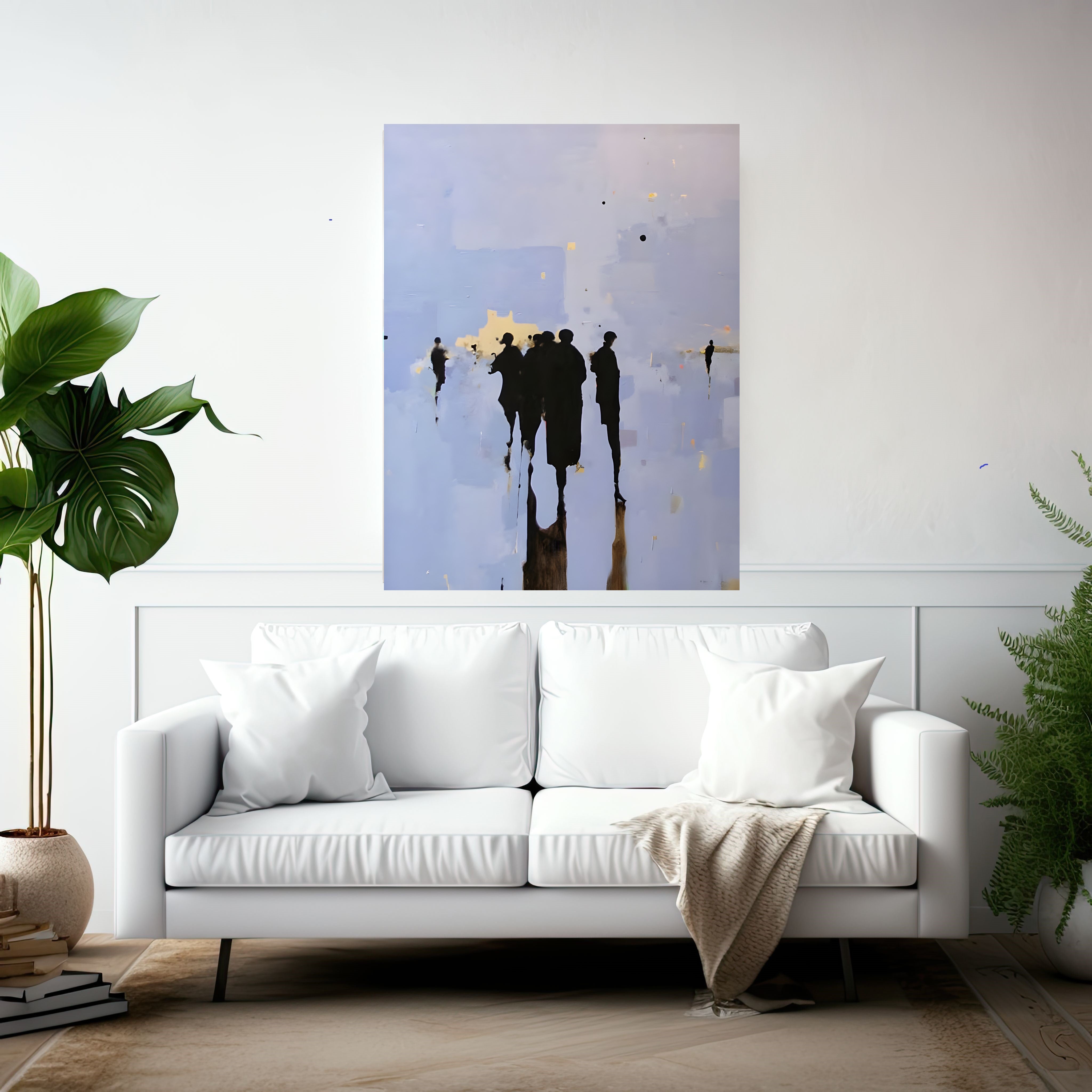 This elegant piece of canvas art, titled "Silent Crowd - Modern," showcases a unique and thought-provoking display of various individuals standing in diverse locations. With a...