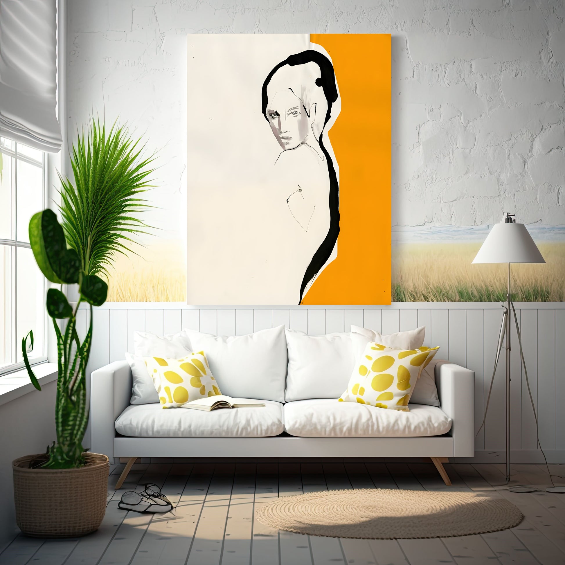 Add a bold and modern statement to your space with this striking abstract portrait canvas art. Featuring a minimalist sketch of a contemplative woman contrasted against a vibrant golden-yellow background, this artwork beautifully balances simplicity with dynamic color. Ideal for contemporary living spaces, bedrooms, or creative environments, this piece exudes sophistication and artistic flair.